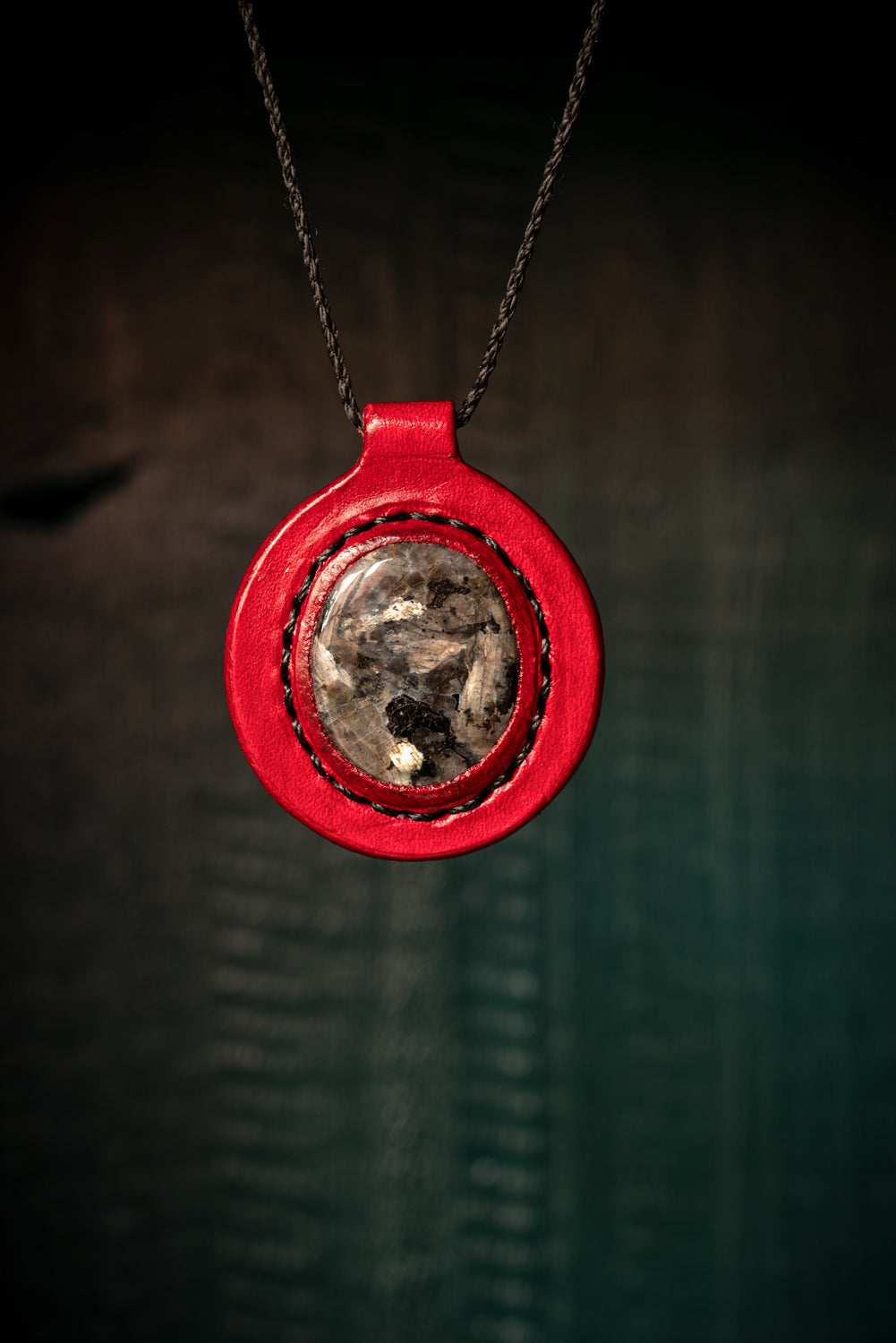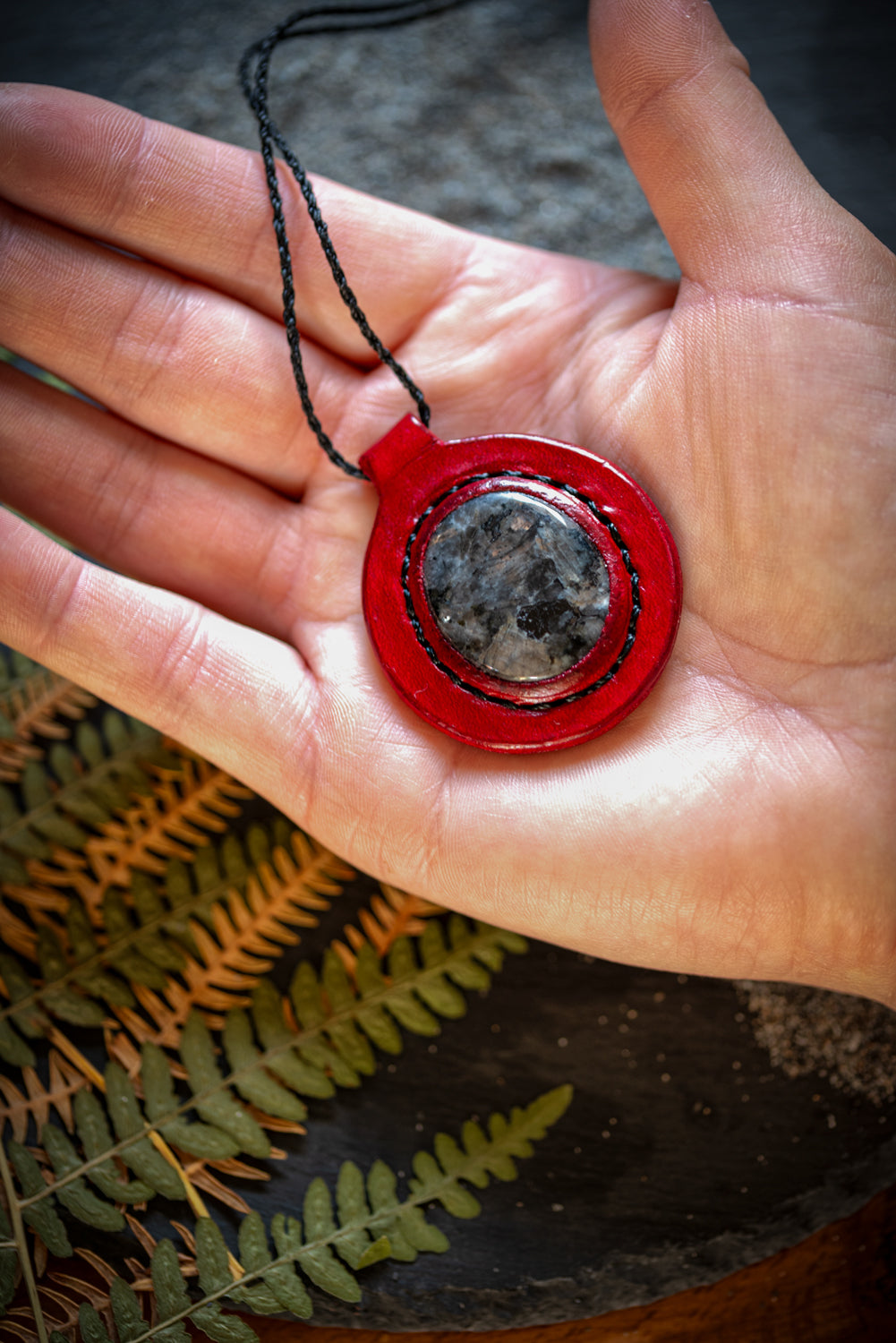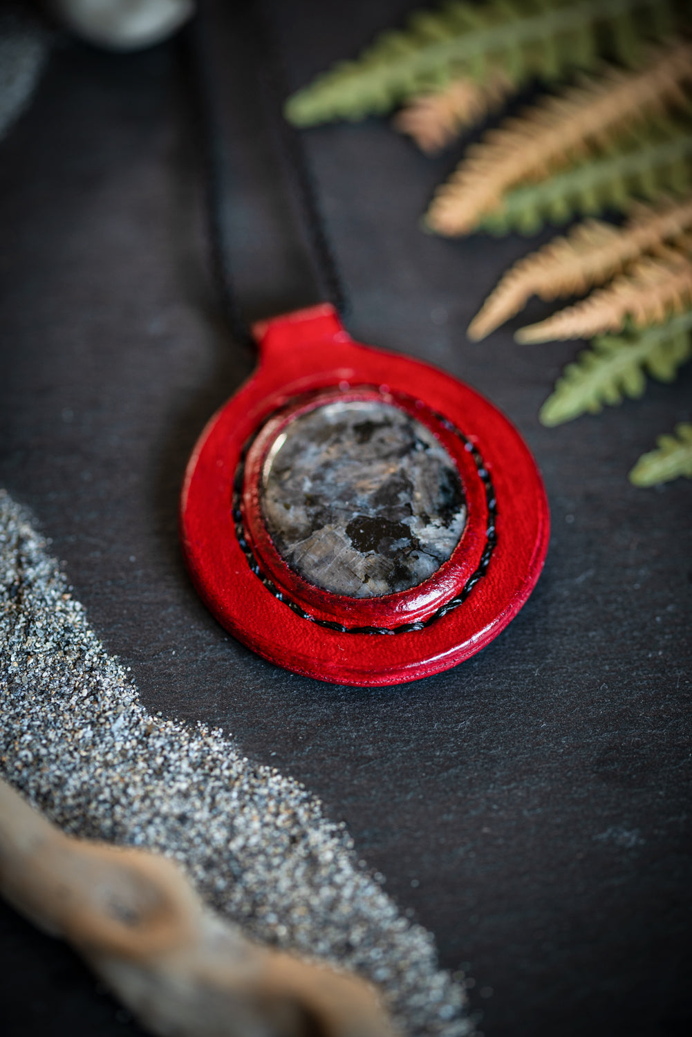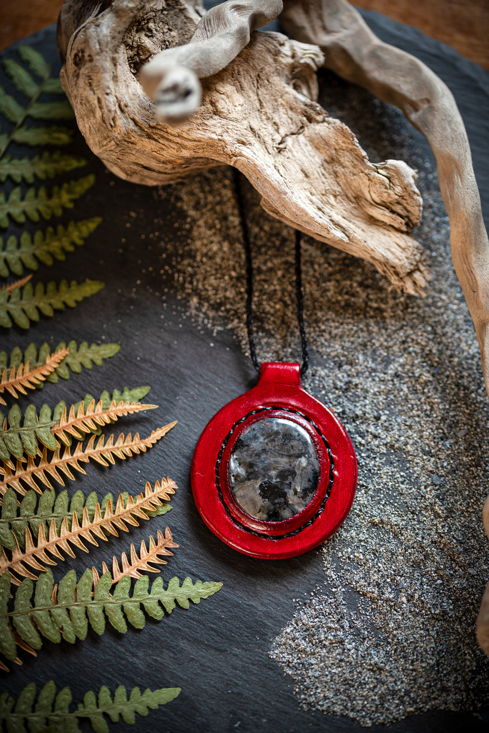 Eirild - Collier cuir et larvikite