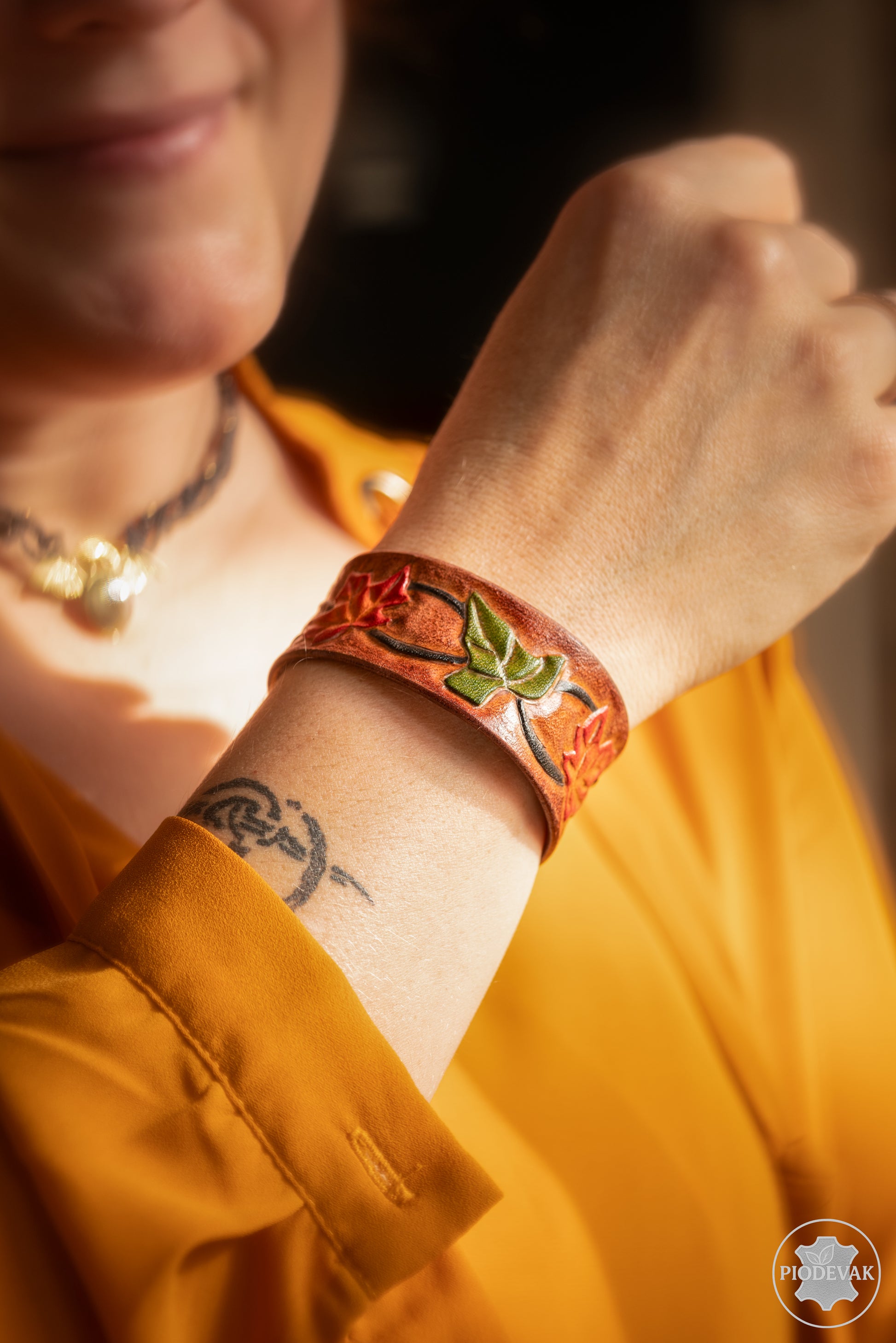 Lorsque les forêts s’embrasent des couleurs chaudes de l’automne, ce bracelet évoque cette saison dans toute sa splendeur. En cuir de vachette, il capture la douceur du vent, le craquement des feuilles sous les pas et la lumière dorée qui filtre entre les arbres.